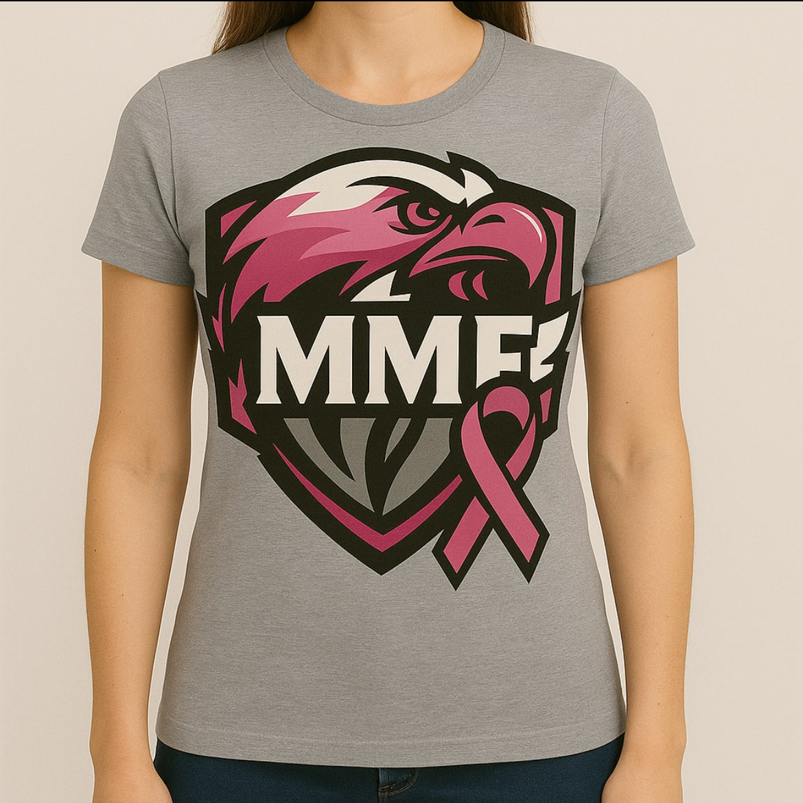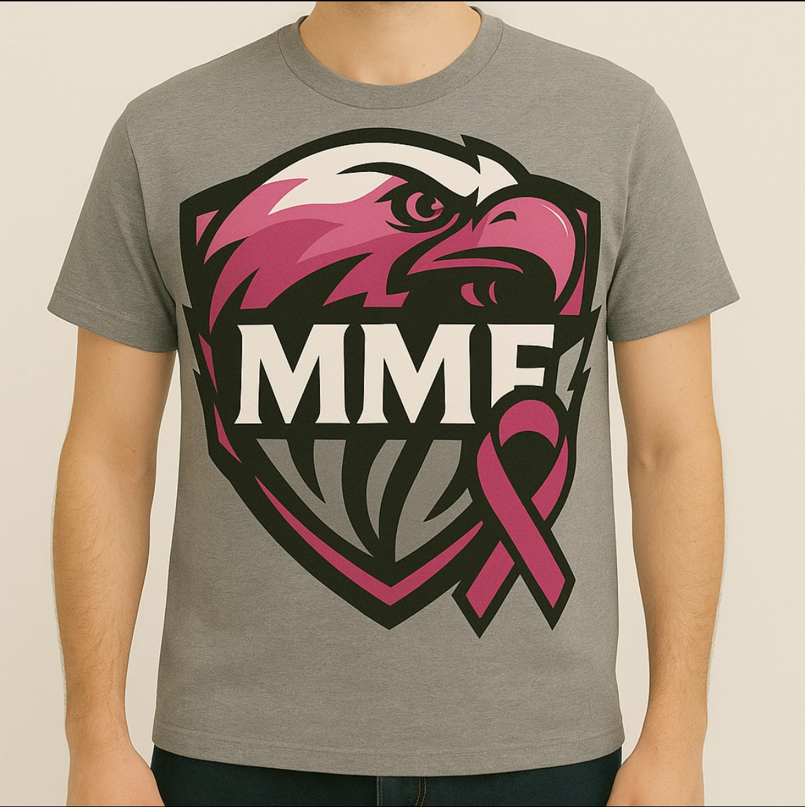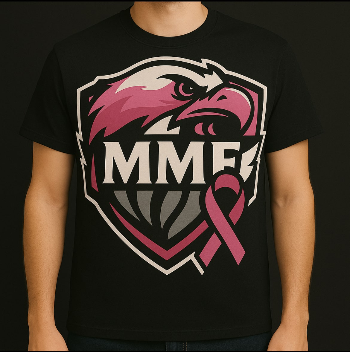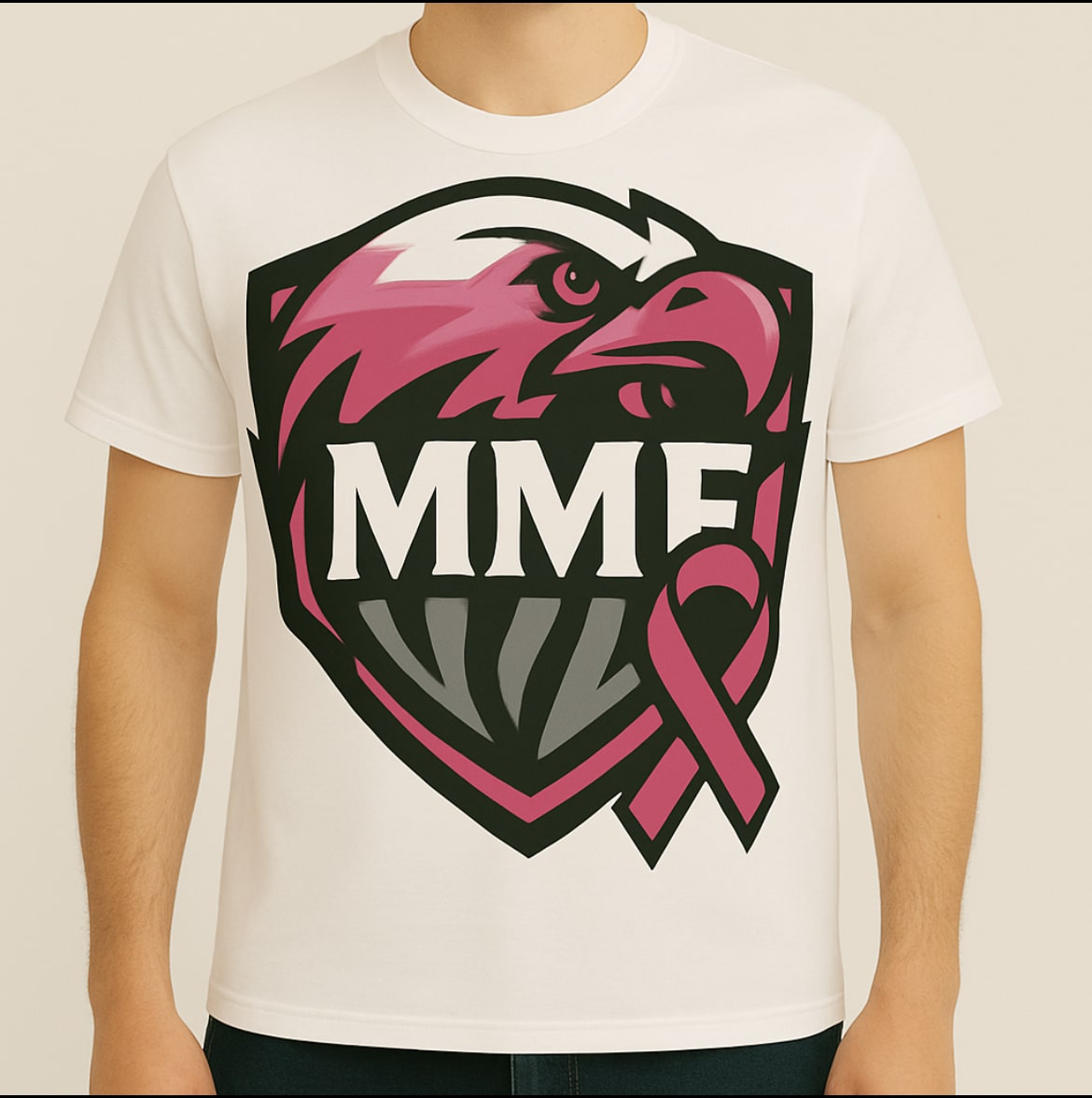Show your strength and spirit with this bold MMF T-shirt, featuring a powerful eagle crest accented in maroon, pink, and gray. Crafted from premium-quality cotton, this shirt delivers both comfort and durability, making it perfect for everyday wear or special events. The striking design combines the fierce energy of an eagle with the supportive symbolism of the pink ribbon—representing courage, awareness, and unity in the fight against breast cancer. Whether you’re supporting a cause or simply want a standout piece, this shirt makes a statement.